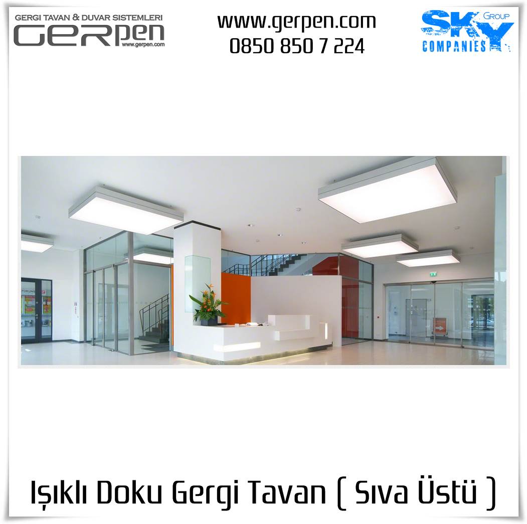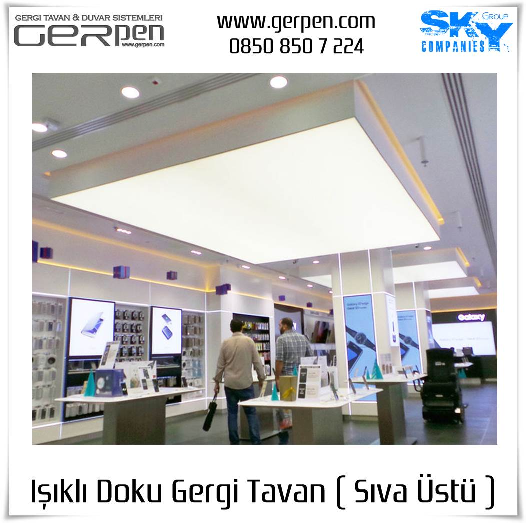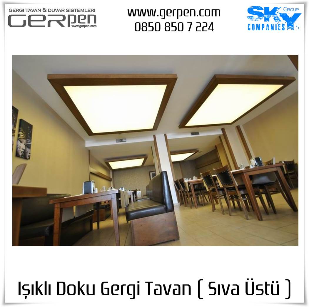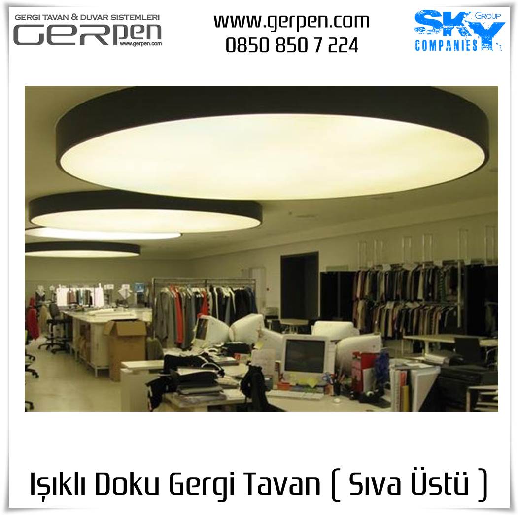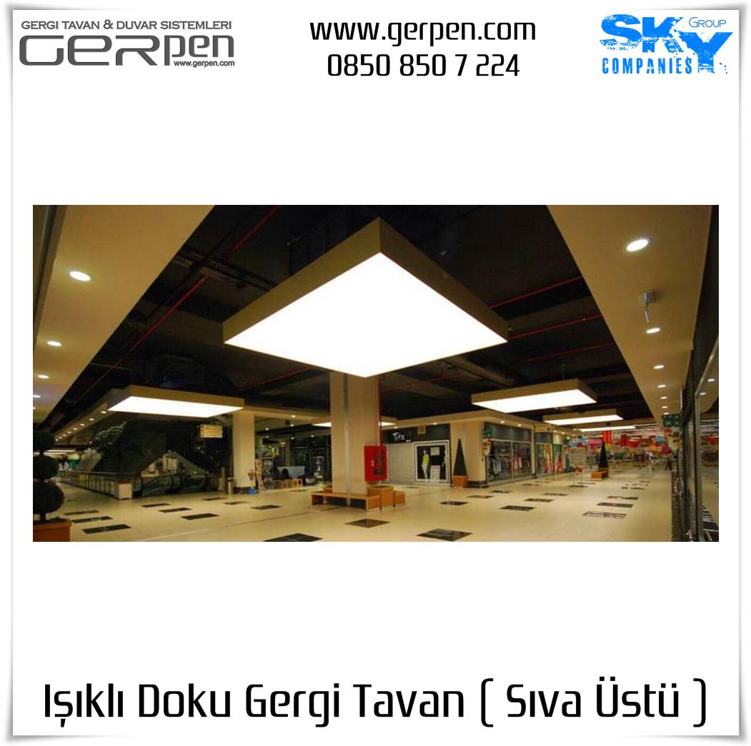 Işıklı Doku Gergi Tavan ( Sıva Üstü ); otel, hastane, ev, okul, iş yeri, lokanta, restaurant, cafe, kafeterya, çeşitli kamu kurumları ve daha bir çok alanda dekorasyon ve aydınlatma amaçlı kullanılabilir. Uygulama öncesi, sıva altı gergi tavan uygulaması gibi uygulanacak alanın alçı pan havuzunun hazır olmasına gerek yoktur. Sıva altı ( alçı pan / niş ) gergi tavan tercih eden müşterilerimiz sıva altı gergi tavan ürünlerimizi tercih edebilirler. Işıklı Doku Gergi Tavan fiyatları ve modelleri için bu sayfamız size eşlik edecektir.
