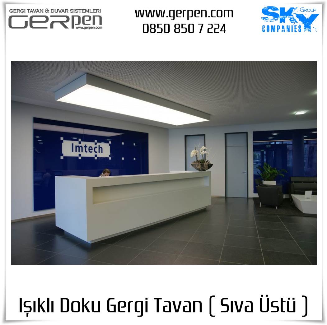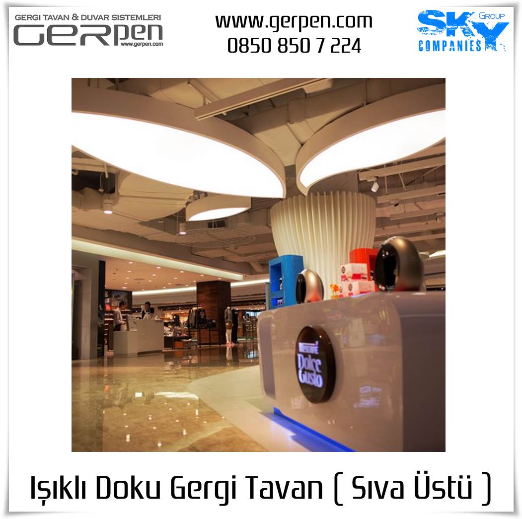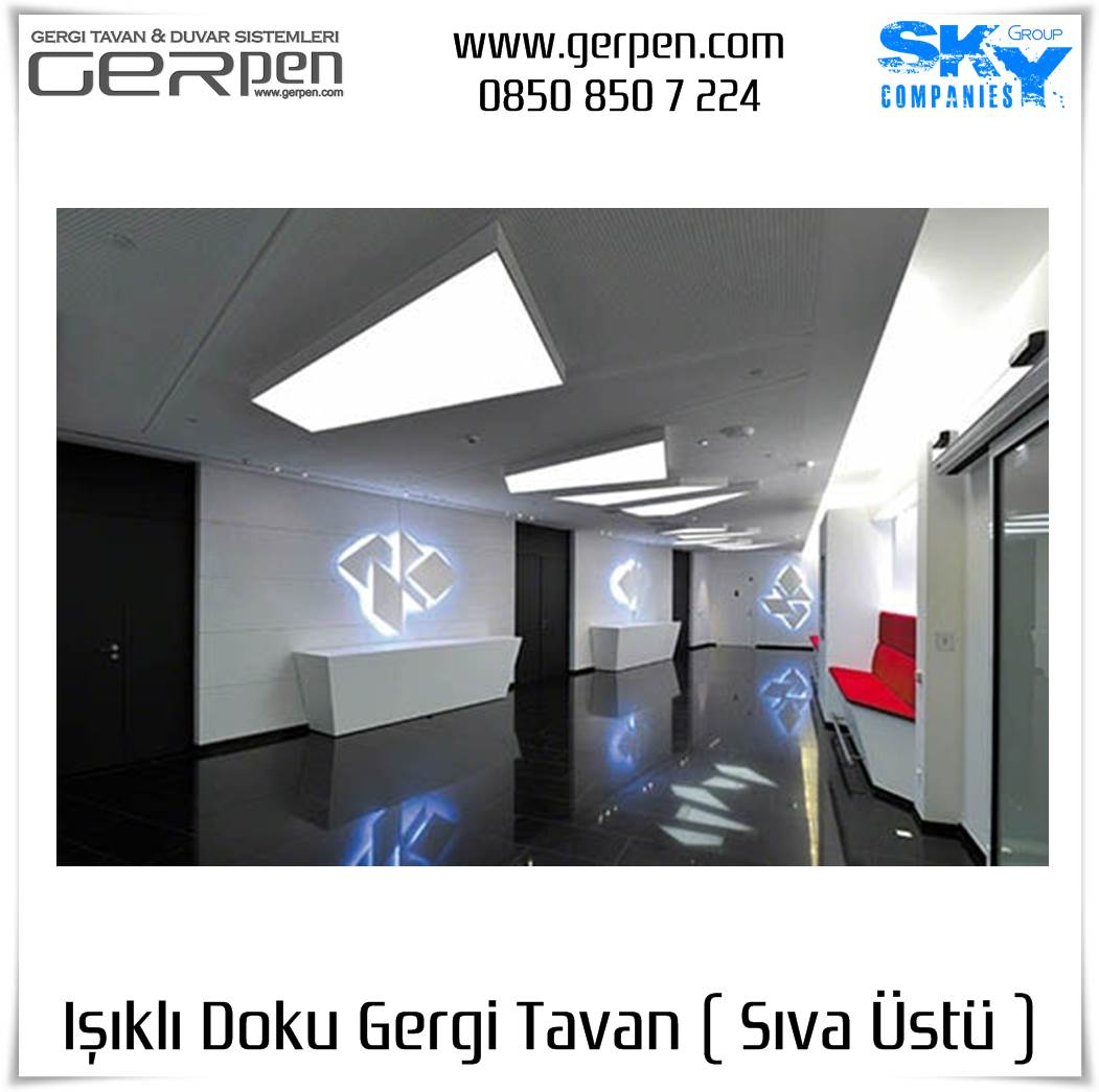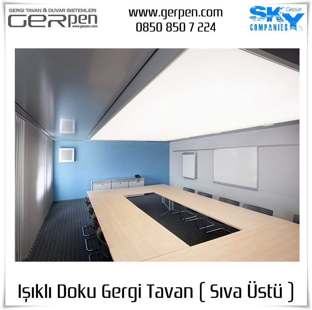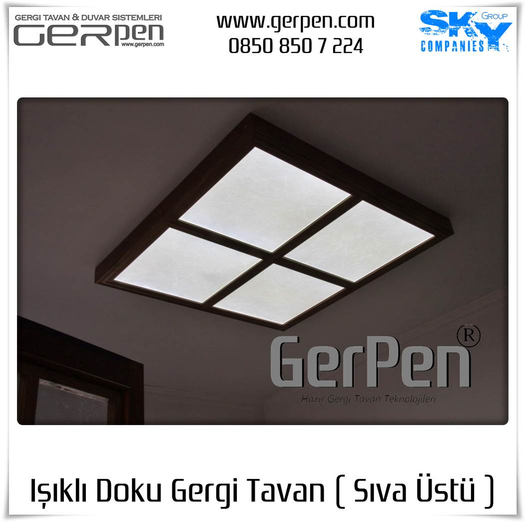 Işıklı Doku Gergi Tavan ( Sıva Üstü ); otel, hastane, ev, okul, iş yeri, lokanta, restaurant, cafe, kafeterya, çeşitli kamu kurumları ve daha bir çok alanda dekorasyon ve aydınlatma amaçlı kullanılabilir. Uygulama öncesi, sıva altı gergi tavan uygulaması gibi uygulanacak alanın alçı pan havuzunun hazır olmasına gerek yoktur. Sıva altı ( alçı pan / niş ) gergi tavan tercih eden müşterilerimiz sıva altı gergi tavan ürünlerimizi tercih edebilirler. Işıklı Doku Gergi Tavan fiyatları ve modelleri için bu sayfamız size eşlik edecektir.